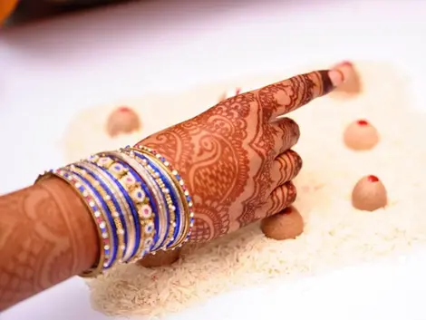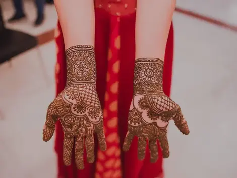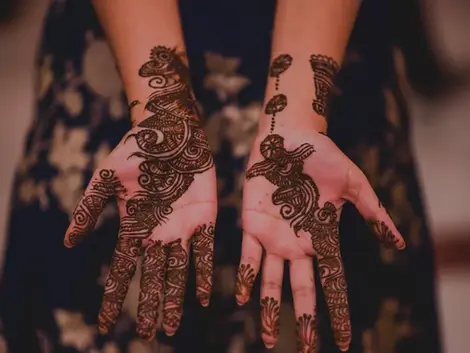 Beautiful henna designs applied to the arm from wrist to elbow.